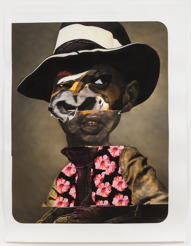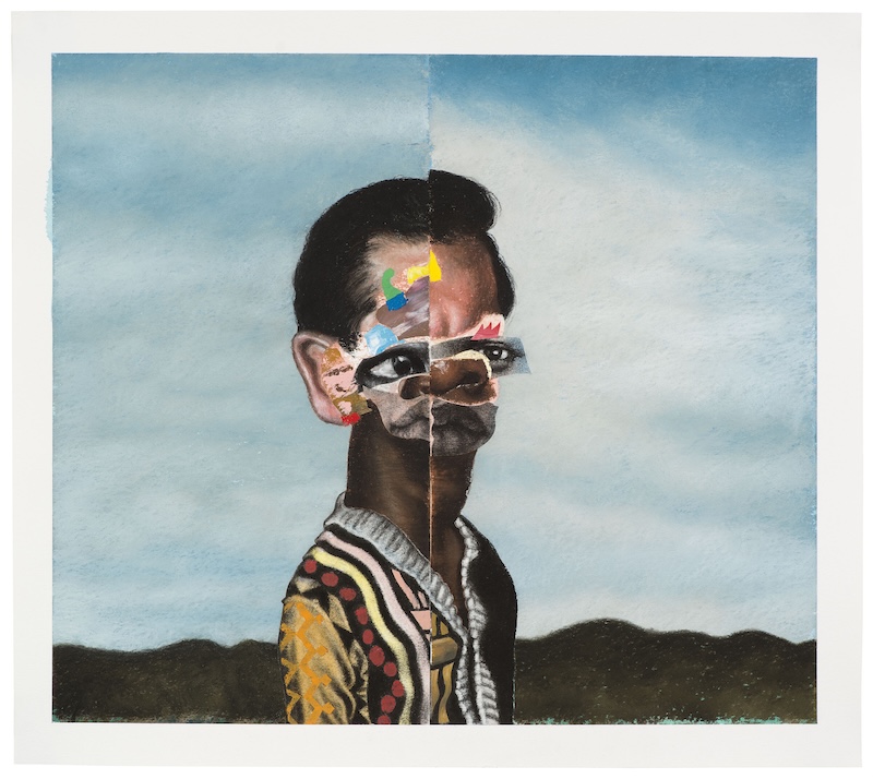 Today, in his collage-like composite portraits, integrated with his “paint-drawing” technique, and derived from both personal and found sources, Quinn probes the relationship between visual memory and perception, exploring the rainbow-like spectrum of humanity. While Quinn’s practice is diverse in its exploration of various subject matter, tender remembrances of his mother’s death and his separation from his family remain a compositional touchstone in his works that feature richly complex portraits of people met throughout his life, including powerful Black women and community members bent on survival. Fragments of images drawn from online sources, fashion magazines, seventeenth-century portraiture, and photographs come together to form hybrid faces and figures that evoke the intimacy and intensity of a face-to-face encounter.